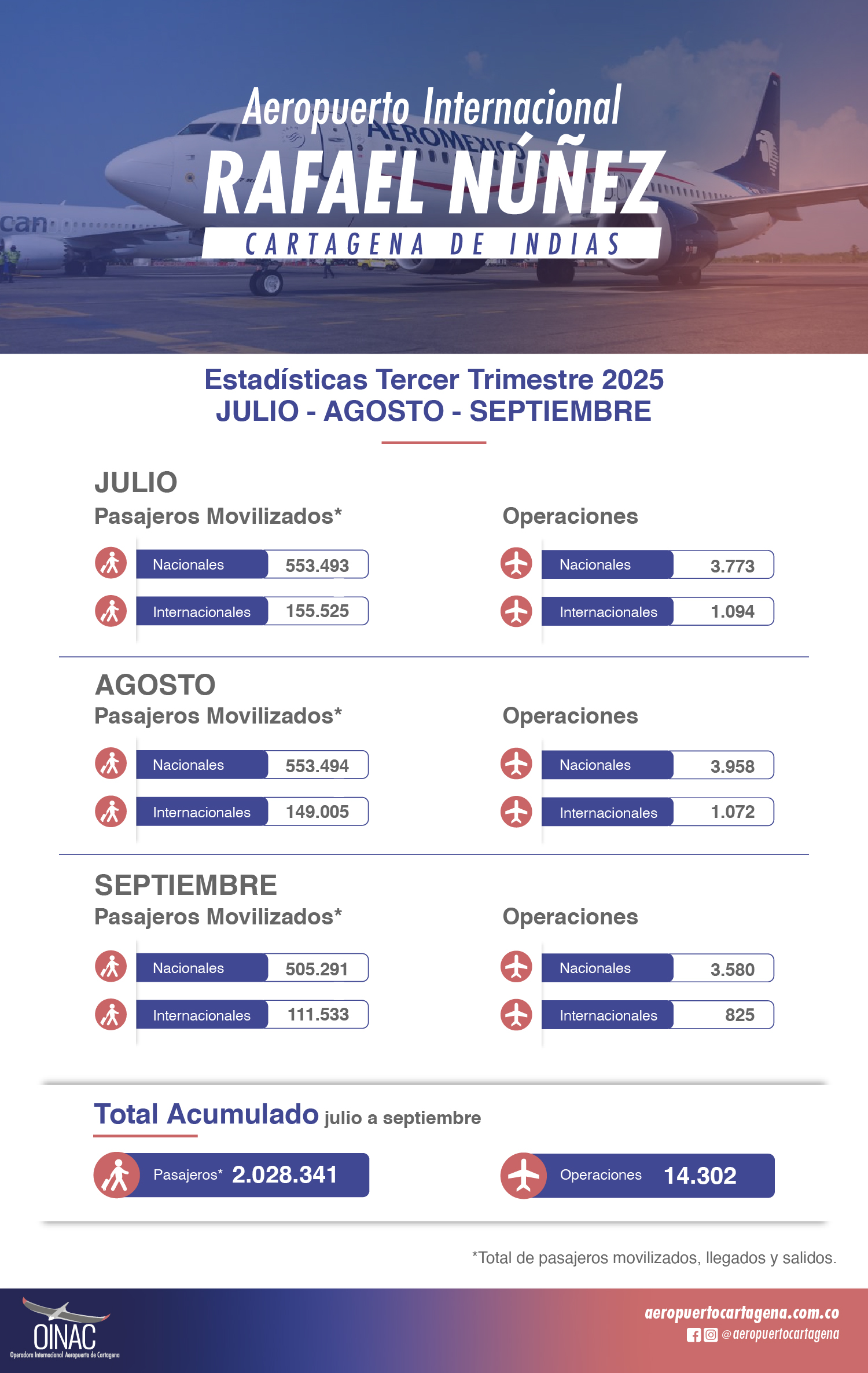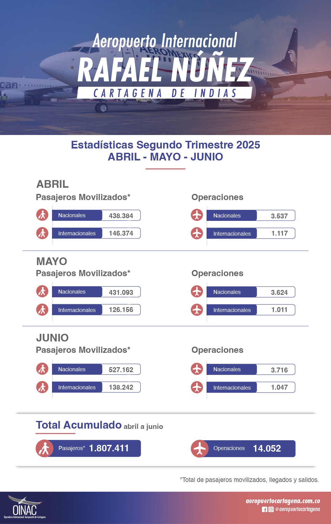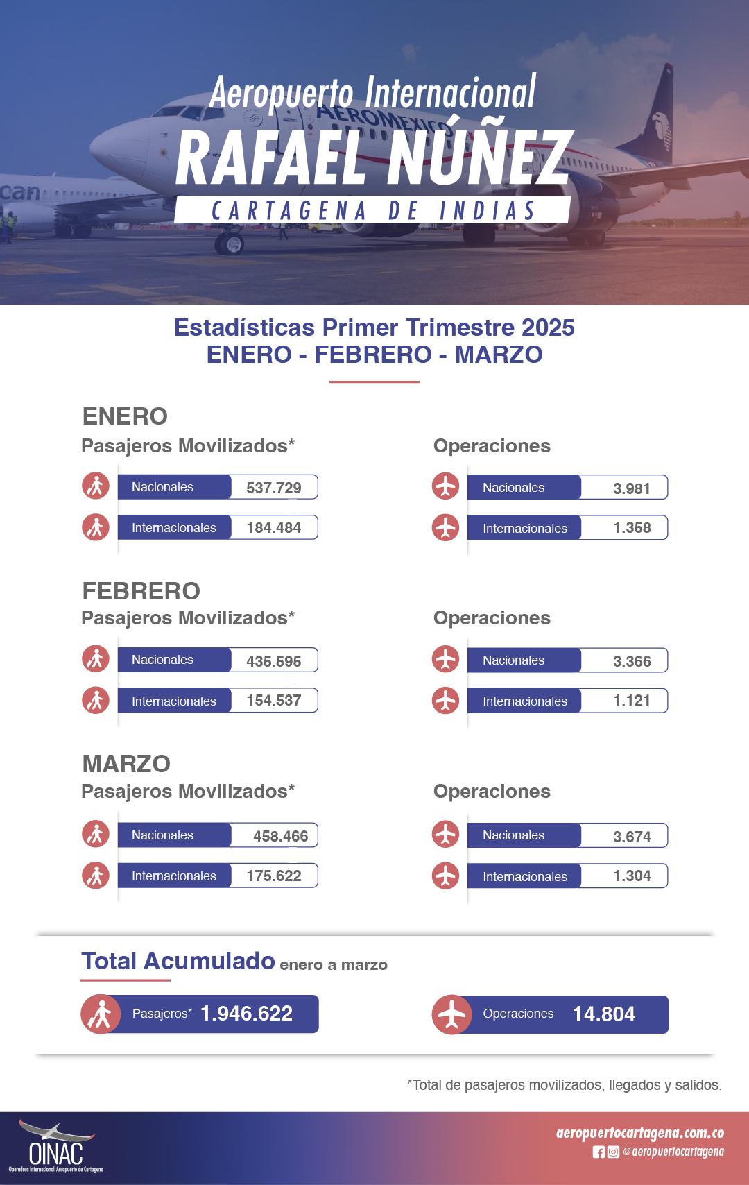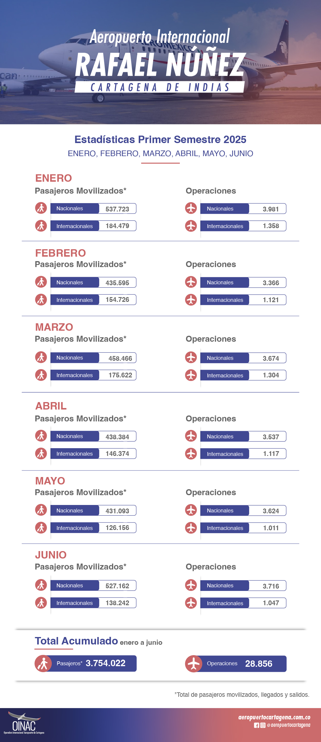 A continuación podrá revisar todas las estadísticas de vuelos reportadas en el Aeropuerto Internacional Rafael Núñez Cartagena de indias.