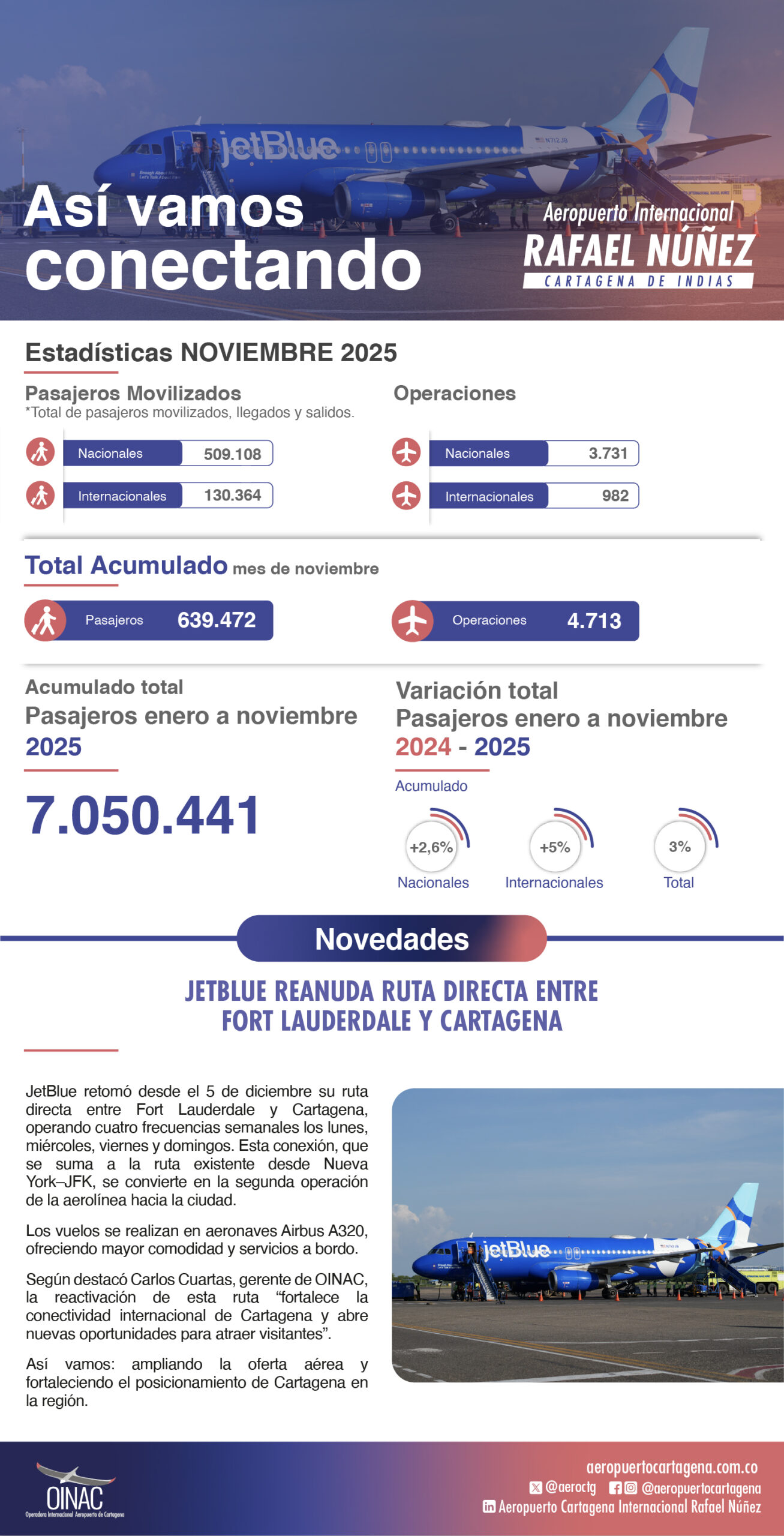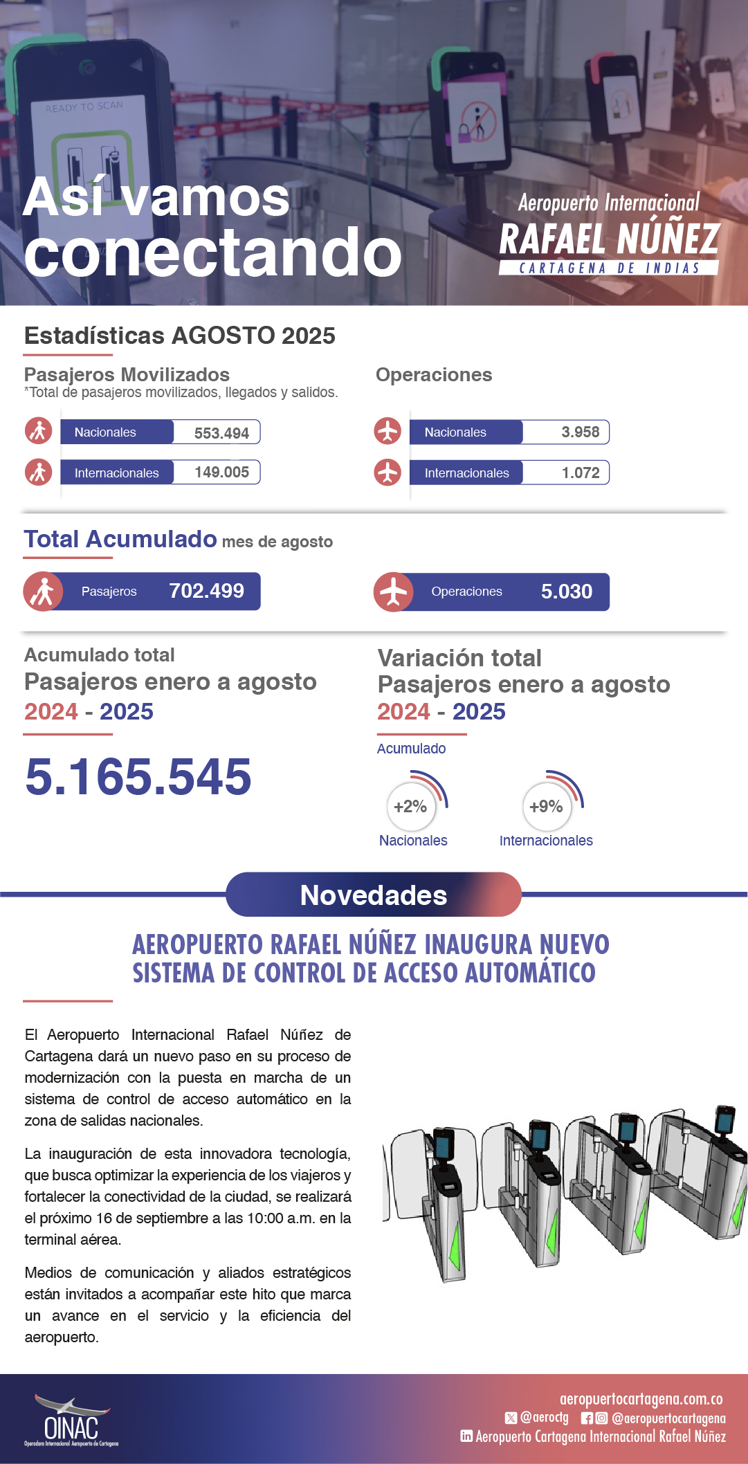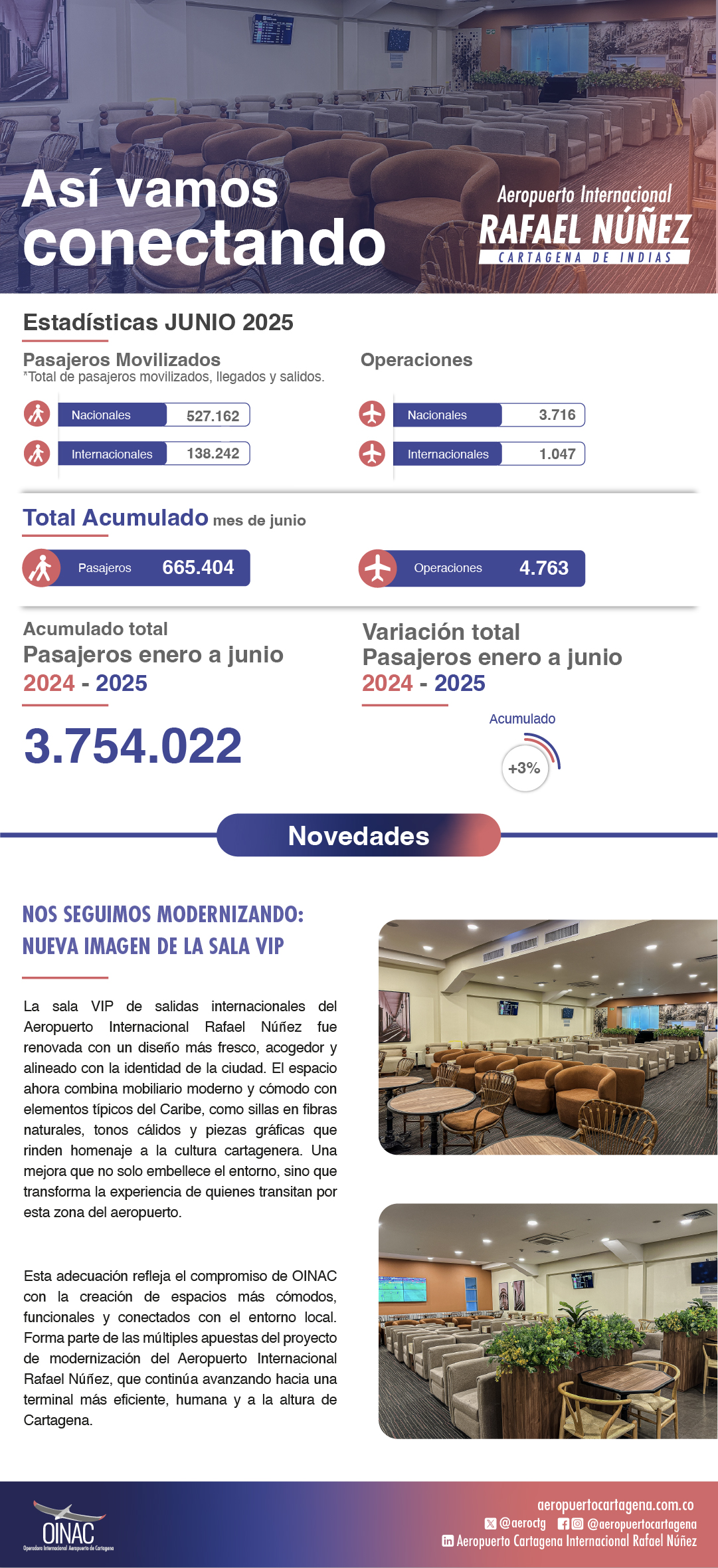A continuación podrá revisar todas las estadísticas de vuelos reportadas en el Aeropuerto Internacional Rafael Núñez Cartagena de indias.