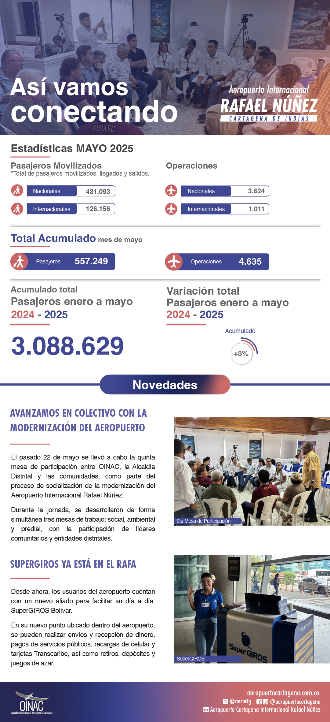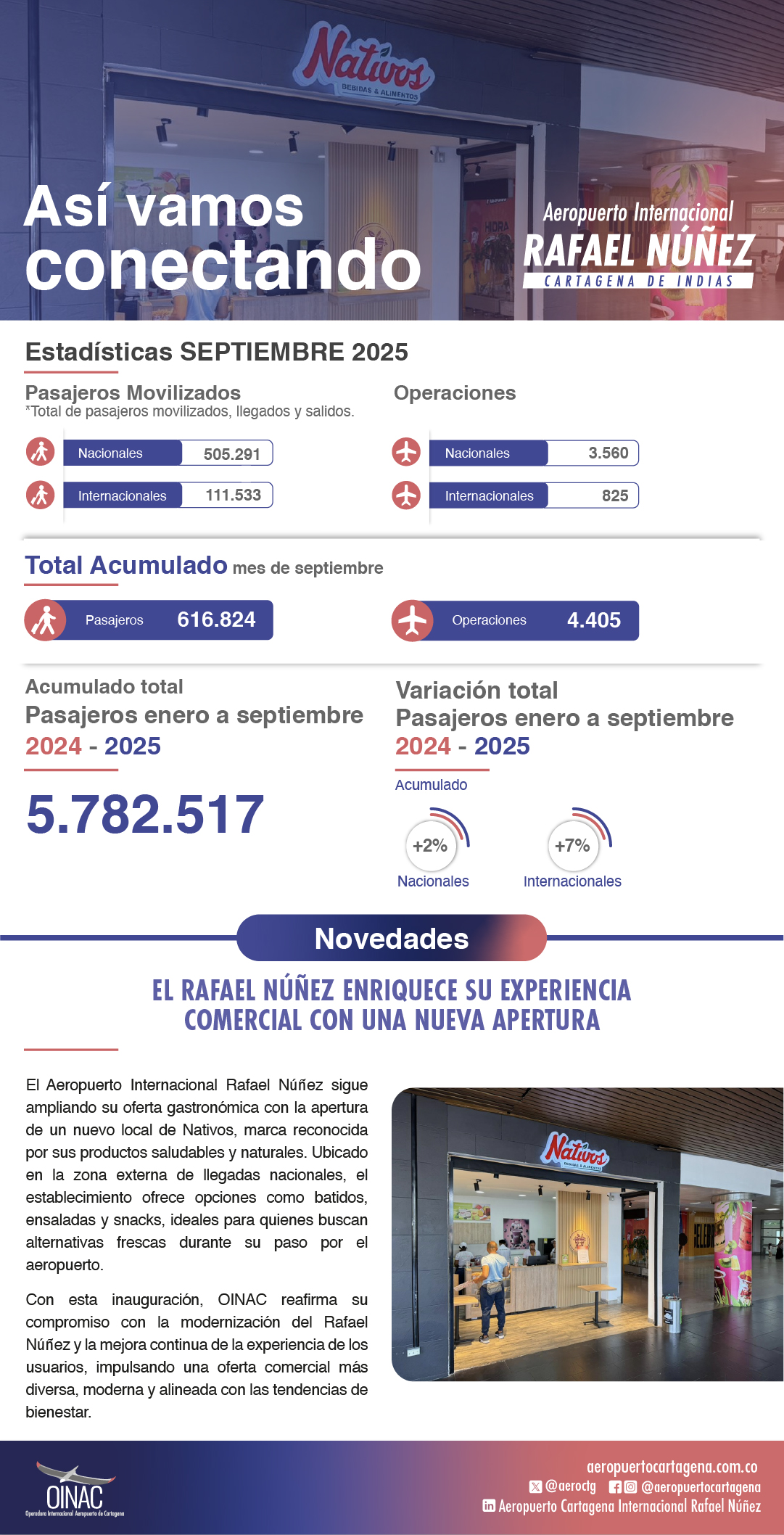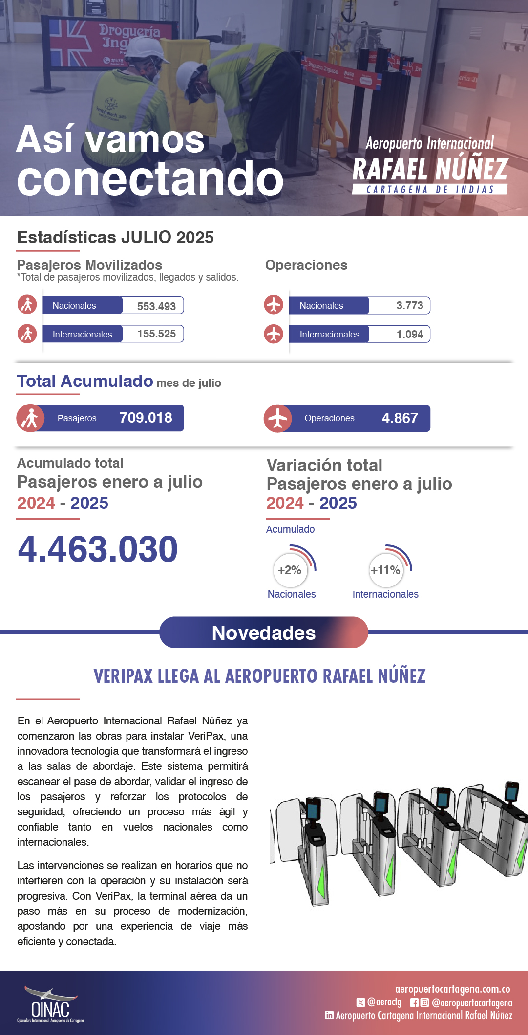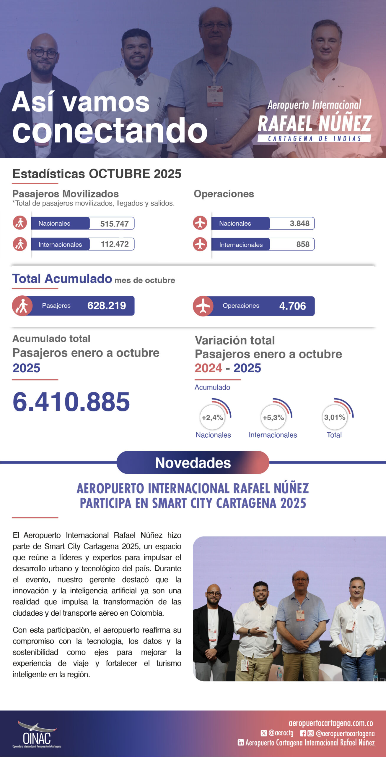 A continuación podrá revisar todas las estadísticas de vuelos reportadas en el Aeropuerto Internacional Rafael Núñez Cartagena de indias.