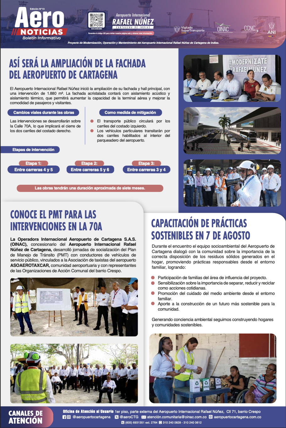 OINAC, Operadora Internacional Aeropuerto Cartagena, es la sociedad encargada de llevar adelante esta transformación, con el respaldo de la Agencia Nacional de Infraestructura, ANI, y el acompañamiento del Consorcio INSAMAR como interventor.
